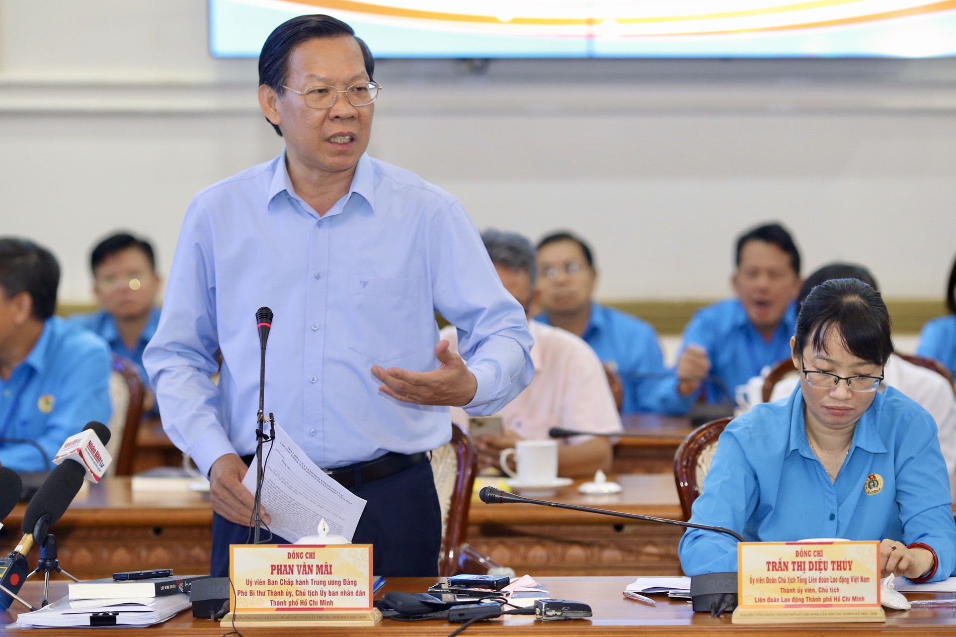 Chủ tịch TPHCM cam kết với công nhân lao động về xây dựng NƠXH tại buổi gặp mặt. Ảnh: CTV