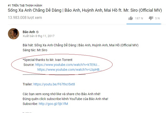 | Ekip Bảo Anh bổ sung nguồn hai bài hoà âm mà MV có sử dụng. |