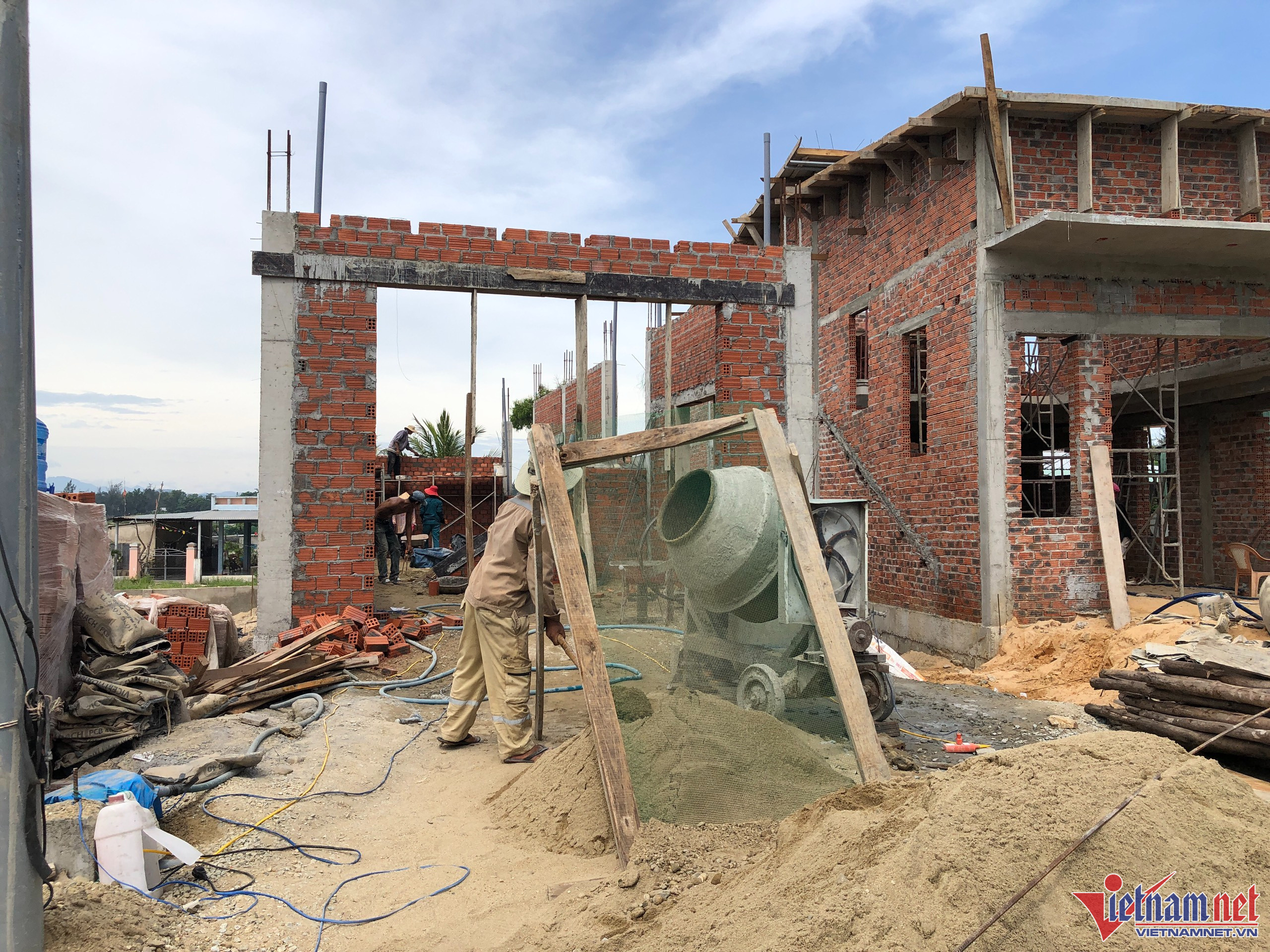Cô Tình-một người dân ở đây đang rất phấn khởi khi ngôi nhà của mình đang được xây dựng chuẩn bị cất nóc tầng 2. Cô bộc bạch, gia đình cô có một căn nhà sát biển với diện tích 420m2 (trong đó có 300m2 đất ở, 120m2 đất vườn).