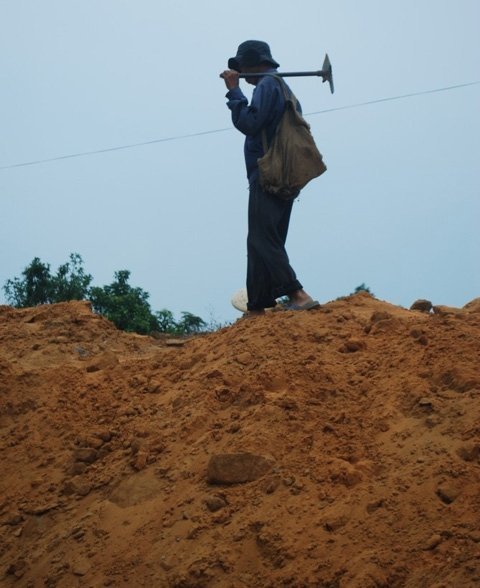 Vừa đến nơi cũng là lúc người rà phế liệu dùng cuốc