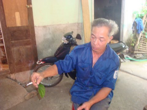 Hai người dùng tay hốt giúp cho người rà phế liệu số bên trong hũ bỏ vào bao tải của người này. Số kim loại được 2 người hốt giúp gồm: Nhiều lá kim loại màu vàng nhạt có hình dạng như lá bồ đề, ngoài viền có răng cưa và trên mặt có nhiều hoa văn lạ mắt cùng một số chữ được sắp xếp theo thứ tự từ nhỏ đến lớn dày hơn gang tay (lá lớn nhất khoảng nửa bàn tay, lá nhỏ nhất bằng đầu ngón tay cái).