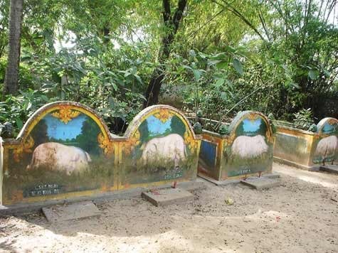 Lễ cầu siêu hoành tráng xong xuôi, thì người phụ nữ này chỉ đạo thở xây ngôi mộ, vẽ hình một con heo béo tốt lên bia, ghi tên Năm Hợi, với cả ngày “hóa”. Sau lần đó, các chủ gửi heo năm móng, ba giò đến chùa cũng học theo. Khi nào lợn chết, được nhà chùa thông báo, họ đến làm lễ mai táng, rồi xây mồ yên mả đẹp cho heo. Thế là sau ngôi chùa Dơi huyền bí, xuất hiện một nghĩa địa heo rất kỳ lạ. Số lượng mộ heo mỗi ngày một nhiều.