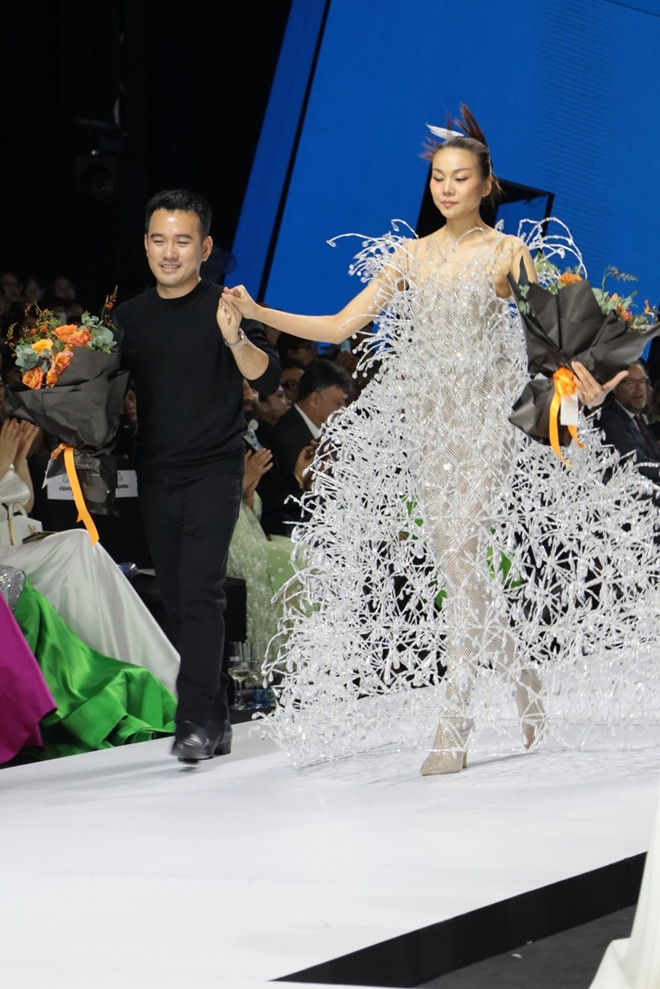 Tối 13/7, Tuần lễ thời trang quốc tế Việt Nam 2023 chính thức khai mạc. Ngoài những hoa hậu, siêu mẫu, sự kiện quy tụ nhiều nhà thiết kế (NTK) nổi tiếng và người hâm mộ thời trang Việt Nam. Là một trong những người xuất hiện sớm nhất trên thảm đỏ, hoa hậu Lương Thùy Linh thu hút mọi ánh nhìn.Hoa hậu Khánh Vân quyến rũ trong thiết kế của NTK Lê Thanh Hòa. Siêu mẫu Lukkade chia sẻ với VietNamNet: “Đây là lần đầu tiên tôi đến Tuần lễ thời trang quốc tế Việt Nam. Tôi rất ấn tượng với quy mô tổ chức và trang phục của những người tham gia”. Cô từ chối trả lời về chương trình The New Mentor được hoa hậu Hương Giang mời tham gia trong vai trò giám khảo vì không được phép.Hoa hậu Hoàn vũ Việt Nam 2022 Ngọc Châu đọ sắc cùng Á hậu Thảo Nhi Lê.Quán quân The Face 2017 Tú Hảo nổi bật với mái tóc đỏ.Á hậu Thuỷ Tiên, Thuỳ Dung và Phương Anh là những người bạn thân thiết dù bước ra từ những cuộc thi lớn khác nhau.Diễn viên - doanh nhân Lý Nhã Kỳ tái xuất thảm đỏ với thiết kế tôn ngực đầy đặn. NTK Đỗ Long (bên trái) và NTK Ivan Trần.NTK Lê Thanh Hoà mở màn đêm đầu tiên với “Hoa trên sóng nước". Với chủ đề thời trang bền vững, NTK Lê Thanh Hòa đã sử dụng vải vụn để tạo nên bộ sưu tập lần này. BST còn là góc nhìn của anh về vẻ đẹp, dấu ấn và sức mạnh của người phụ nữ trong xã hội. Cặp đôi Minh Triệu - Kỳ Duyên diễn vị trí first face. Bộ sưu tập gồm các thiết kế sử dụng chất liệu thân thiện với môi trường như lụa Mã Châu, organza, taffeta, sợi cọ raffia. Siêu mẫu Thanh Hằng đảm nhận vai trò vedette của BST với thiết kế độc đáo với tạo hình chiếc váy được dựng lên từ vô số tia nước . Tuần lễ thời trang quốc tế Việt Nam năm nay chào đón sự trở lại của các NTK, người mẫu quốc tế sau 3 năm vắng bóng vì dịch Covid-19. Ngoài Ý và Singapore, Hà Lan, Israel và Úc cũng có NTK tham gia chương trình. Siêu mẫu Vũ Thu Phương là vedette của trong BST của Học viện thời trang Marangoni (Ý).Siêu mẫu Anh Thư là gương mặt cuối cùng trong BST của NTK Frederick Lee (Singapore). Hoa hậu Ngọc Châu cũng góp mặt trong BST của NTK Frederick Lee.