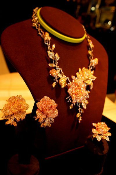 | Bộ trang sức mang tên Vườn hồng theo Lý Nhã Kỳ là độc nhất vô nhị, khó có thể kiếm được bộ thứ hai tinh xảo như thế này |