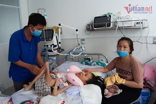 Vài tuần nay, vợ chồng chị Kim Anh phải thay phiên nhau túc trực 24/24 giờ. “Bé Quỳnh hay bị đờm. Con không thể ho để tống đờm ra ngoài như những người khỏe mạnh. Vì vậy, chỉ cần sơ sẩy chốc lát cũng có thể mất con”, chị Kim Anh xót xa nhìn con gái.