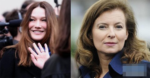 Cựu đệ nhất phu nhân Pháp Carla Bruni (ảnh trái) và bạn gái của tân Tổng thống Pháp Francois Hollande |