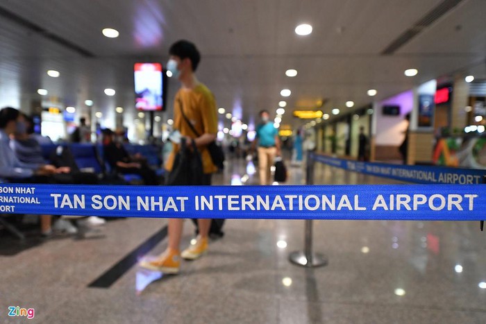 Hành khách khi xuống Cảng hàng không Tân Sơn Nhất (TP.HCM) đều phải qua lấy mẫu xét nghiệm Covid-19 bằng que thử dịch hầu và dịch họng để lưu trữ mẫu rồi mới được ra ngoài. Mỗi người chỉ mất khoảng 3 phút cho thủ tục này nhưng họ phải xếp hàng chờ đợi khá lâu tại sân bay.