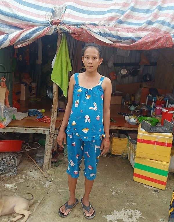 | Chị Thạch Thị Dươne đang mang bầu gần 9 tháng, bị mắc kẹt tại công trình xây dựng do dịch Covid-19. |