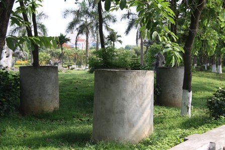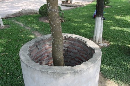 Đây là những gốc sưa hiếm hoi được trồng tại vườn hoa Phủ Lý gần chục năm nay. Việc “mặc quần bê-tông” cho cây là sáng kiến của Đội bảo vệ vườn hoa Phủ Lý trước nạn sưa tặc đang nở rộ khắp nơi.