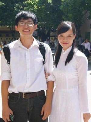 | Lê Thành Đạt (trái), thủ khoa khối A Đại học Sư phạm Hà Nội |
