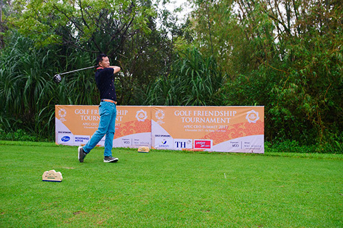 Từ 5 giờ sáng 8/11, dẫu trời mưa, nhưng 120 nhà lãnh đạo, CEO đã cùng tham dự Giải đấu golf giao hữu – Golf Friendship Tournament tại sân golf đạt chuẩn quốc tế Montgomerie Links - đã từng được Tạp chí Forbes bình chọn là một trong 10 sân golf đẳng cấp nhất Châu Á.