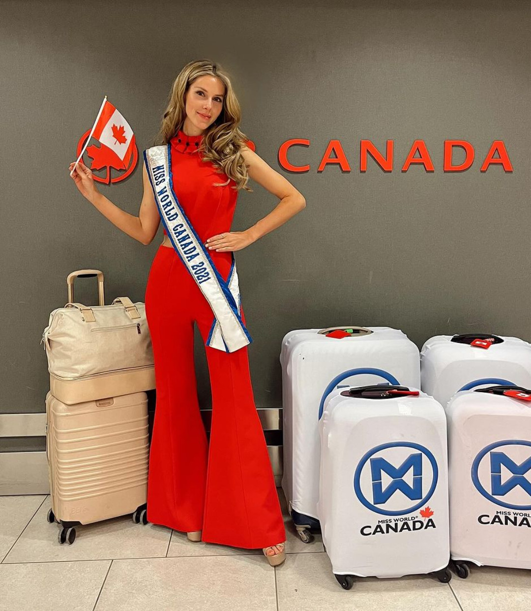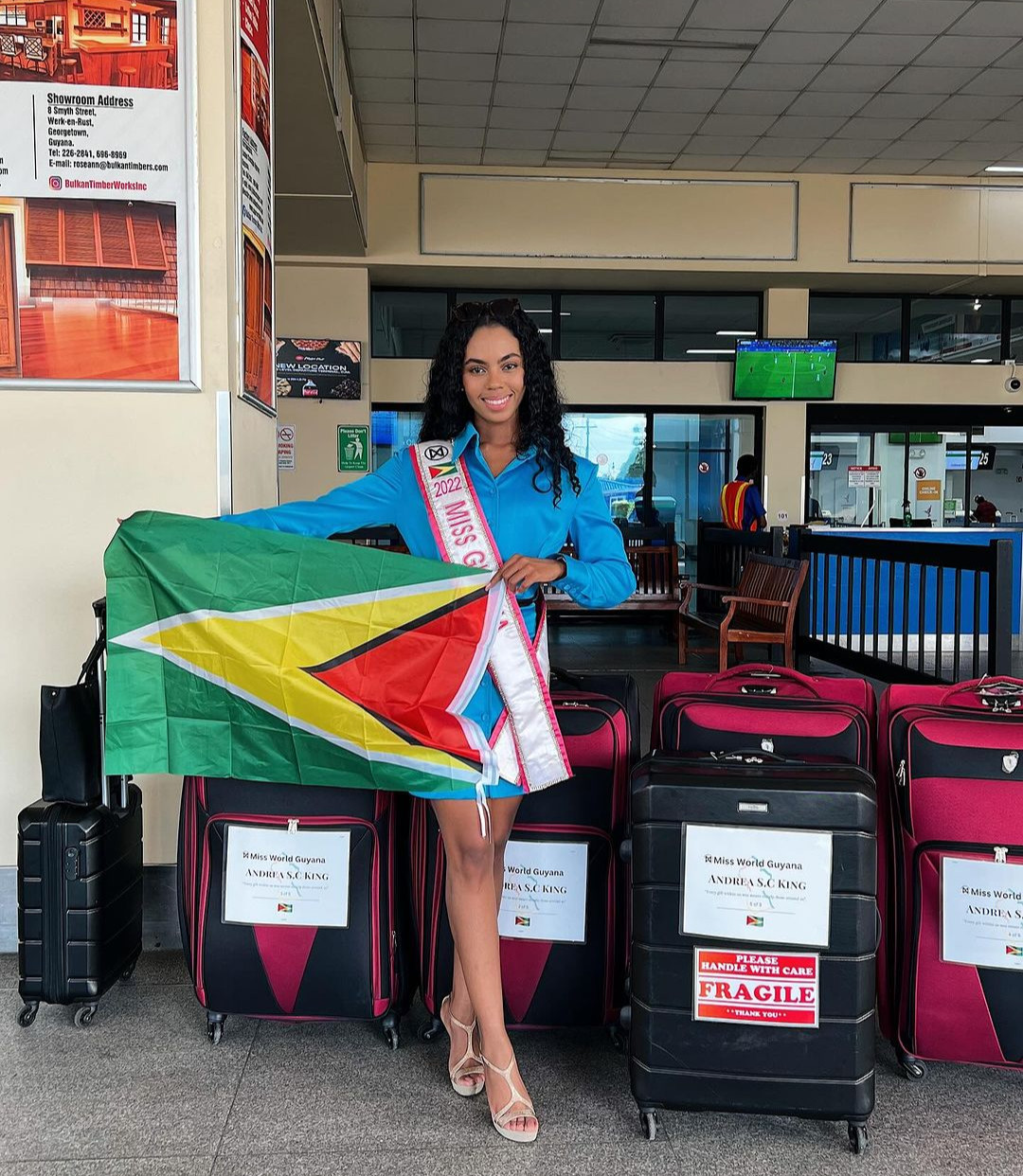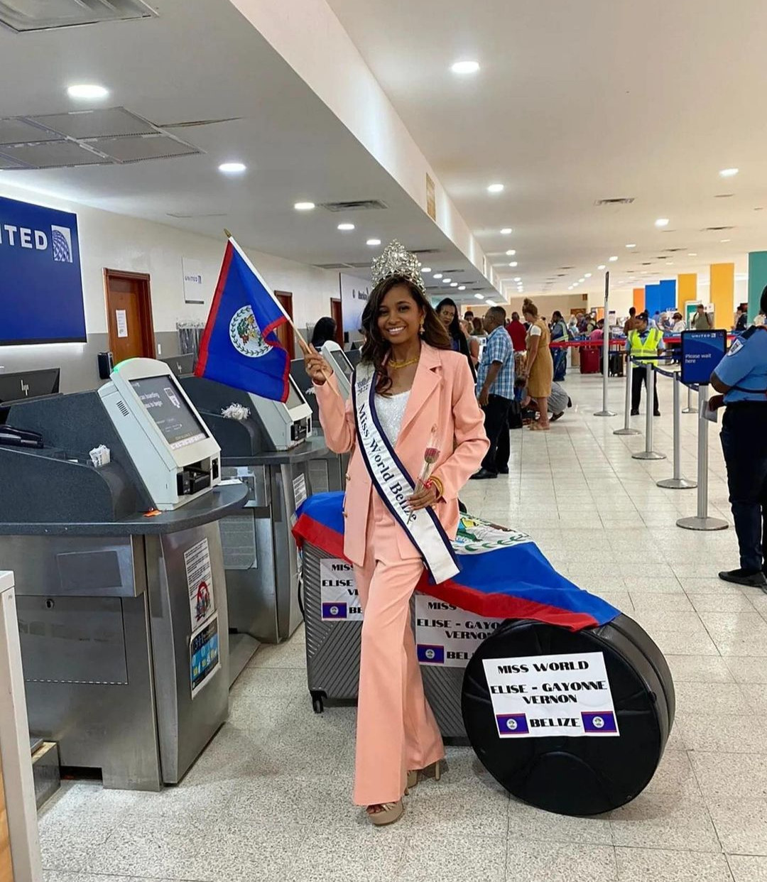Các đại diện của Guyana, Belize, Canada và Martinique tại sân bay chuẩn bị khởi hành đến cuộc thi.