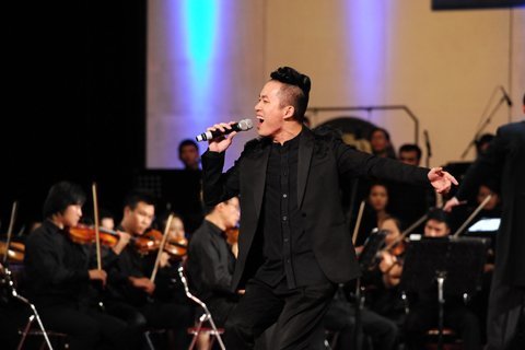 Tùng Dương trình bày các ca khúc "tủ": Con cò, Dư âm, Liti với dàn nhạc giao hưởng.