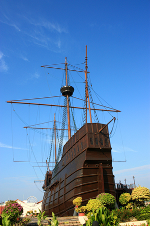 nằm bên bờ sông Malacca, có hình dáng của một chiếc thuyền buồm. Theo lời của