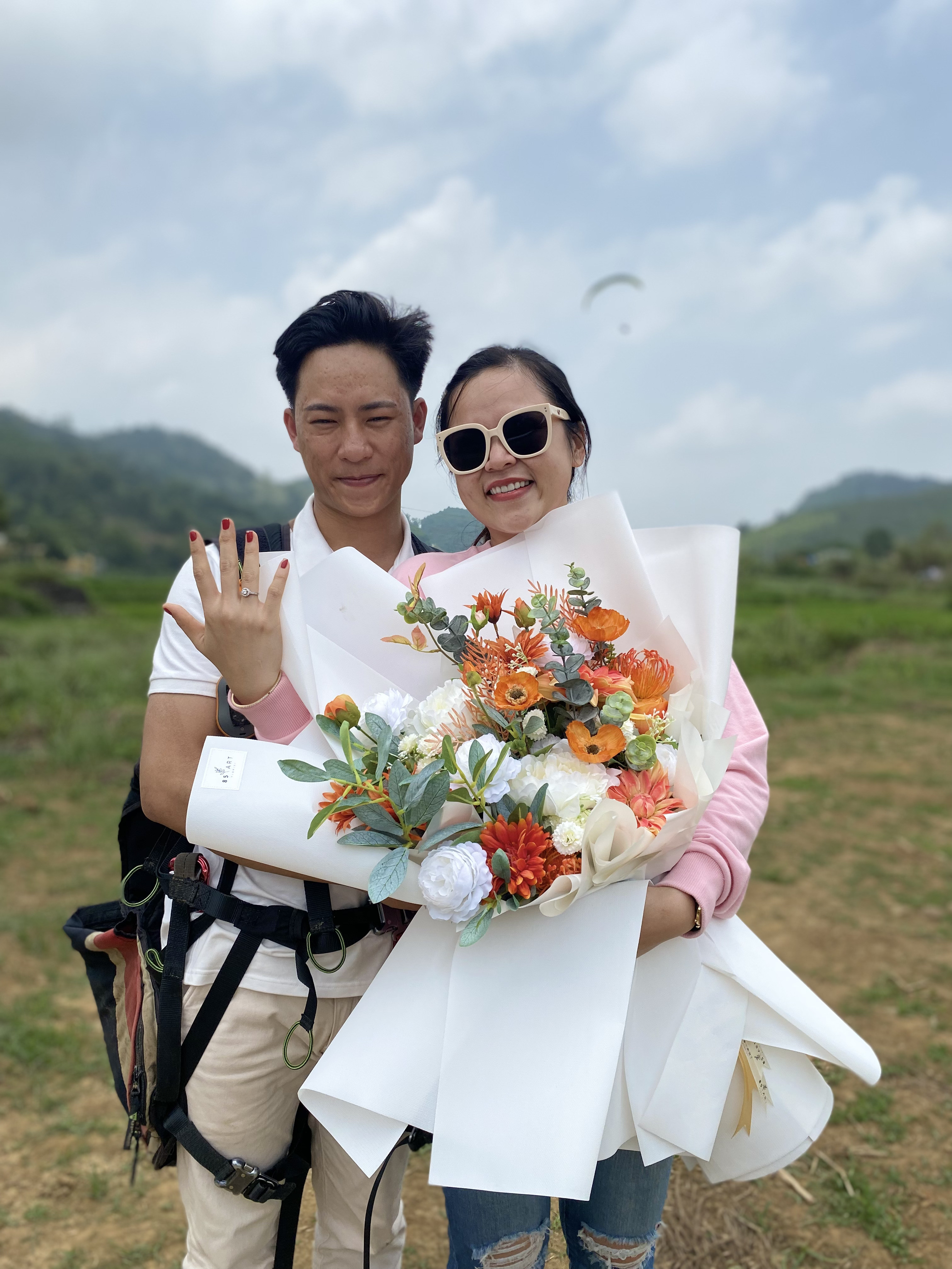 10 ngày trước buổi trải nghiệm bay, chàng trai đến từ Quảng Trị Nguyễn Anh Tuấn ngỏ lời với ekip tổ chức bay dù lượn tại núi Viên Nam (Hòa Bình), rằng anh muốn thực hiện một màn cầu hôn đặc biệt chưa từng có ở Việt Nam.