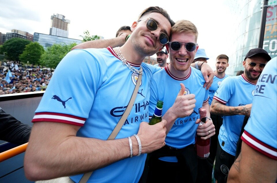 Các cầu thủ Manchester diễu hành trên xe buýt hai tầngRất đông fan The Citizens tham gia buổi ăn mừng cùng thầy trò GuardiolaJack Grealish uống bia ăn mừng danh hiệu Premier League đầu tiên kể từ khi chuyển đến Man CitySự phấn khích của RodriĐội trưởng Fernandinho giương cao cúp vô địchCác cầu thủ tiếp tục tham dự buổi gala chia vui với người hâm mộ Manchester