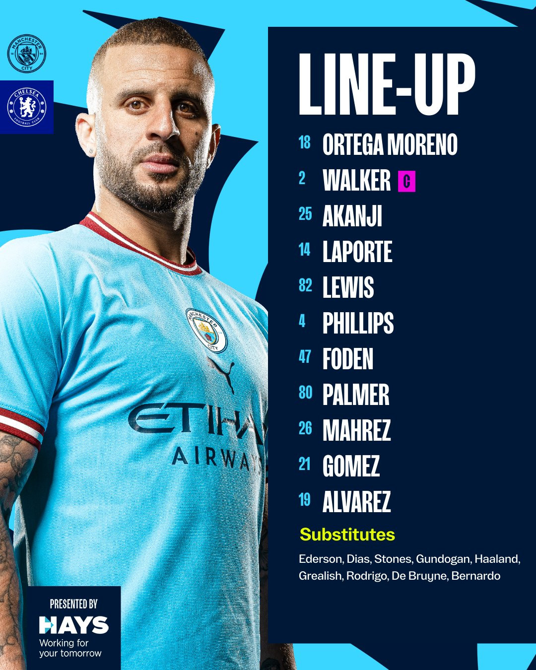 Man City: Ortega; Walker, Lewis, Laporte; Akanji, Phillips; Mahrez, Foden, Palmer, Gomez; Alvarez.