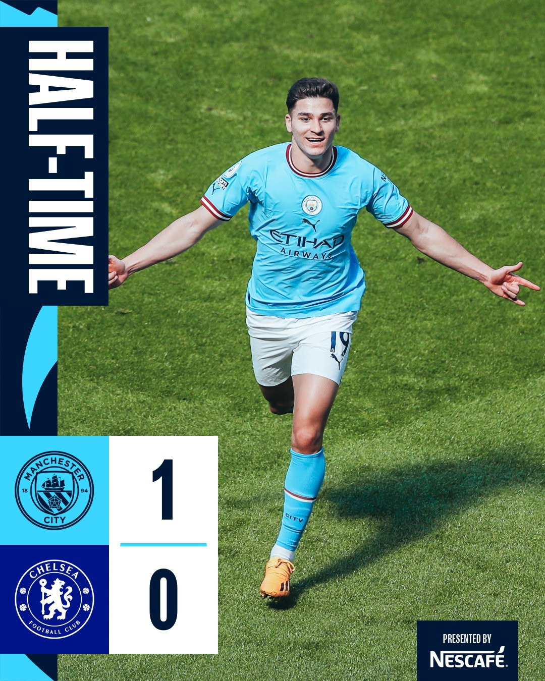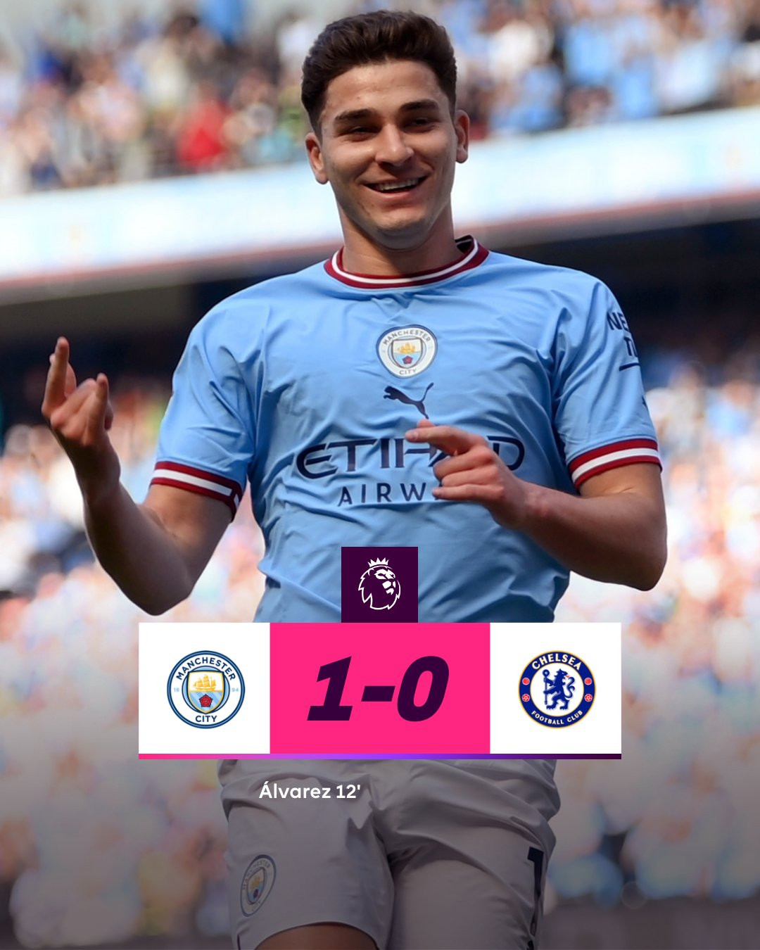 Bàn thắng (1-0, Julian Alvarez): Cole Palmer tung đường chuyền sắc như dao cạo để Alvarez tung ra cú đá chân phải hiểm hóc đầu vòng cấm tung lưới Chelsea.