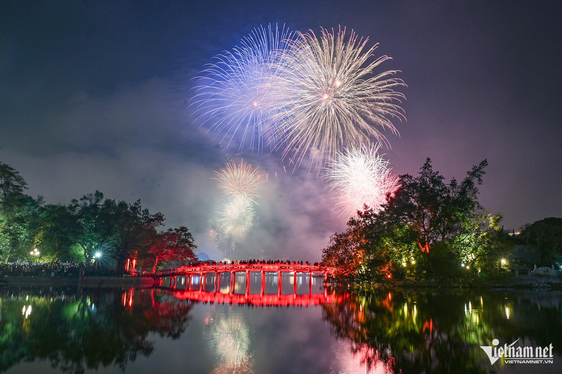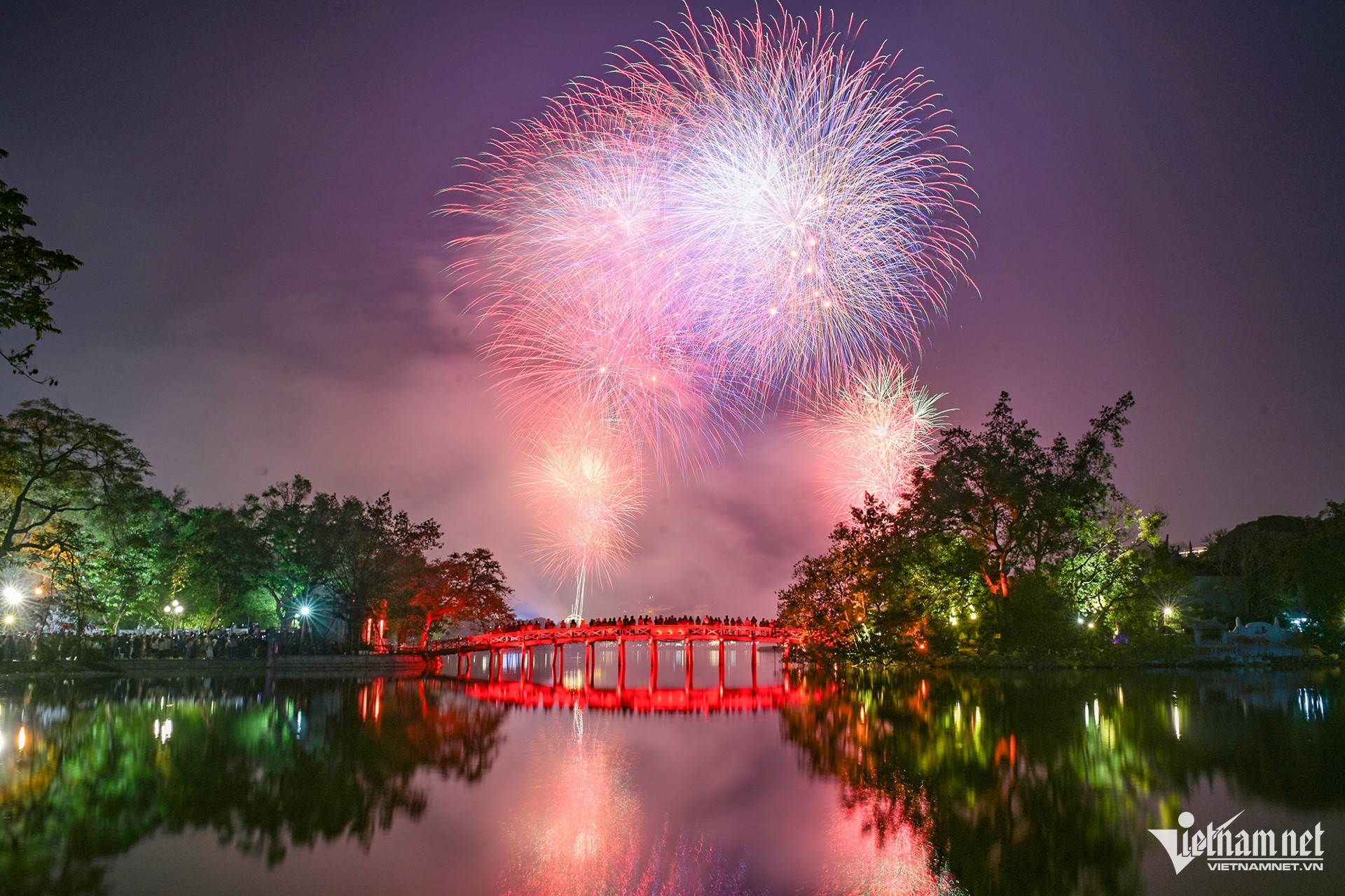 0h, loạt pháo đầu tiên được bắn lên từ trận địa đặt bên hướng phố Lê Thái Tổ. Bầu trời khu vực hồ Hoàn Kiếm lúc này khá mù sương khiến cho nhiều khán giả chưa được thỏa mãn sự mong đợi nhiều giờ qua.