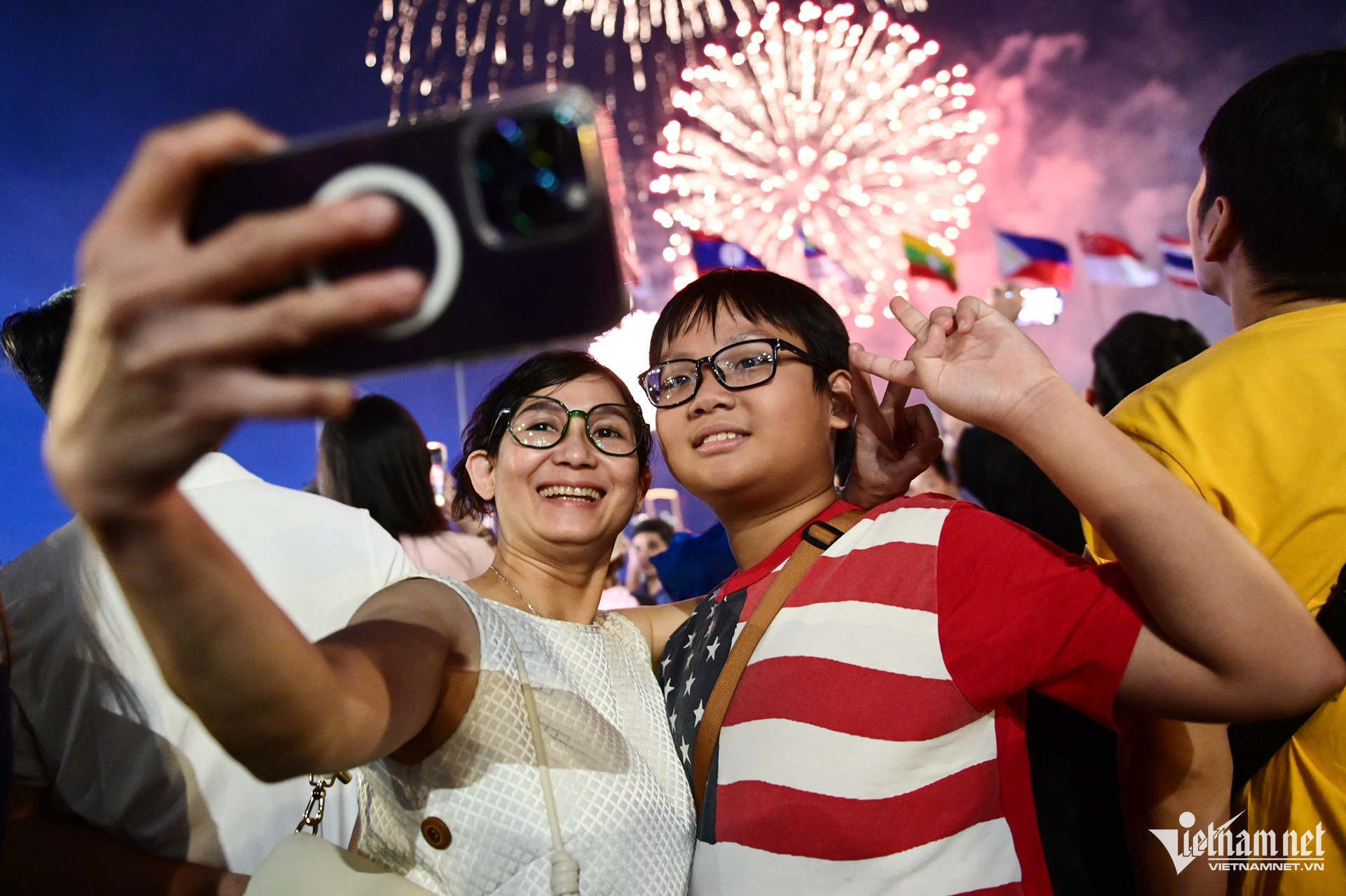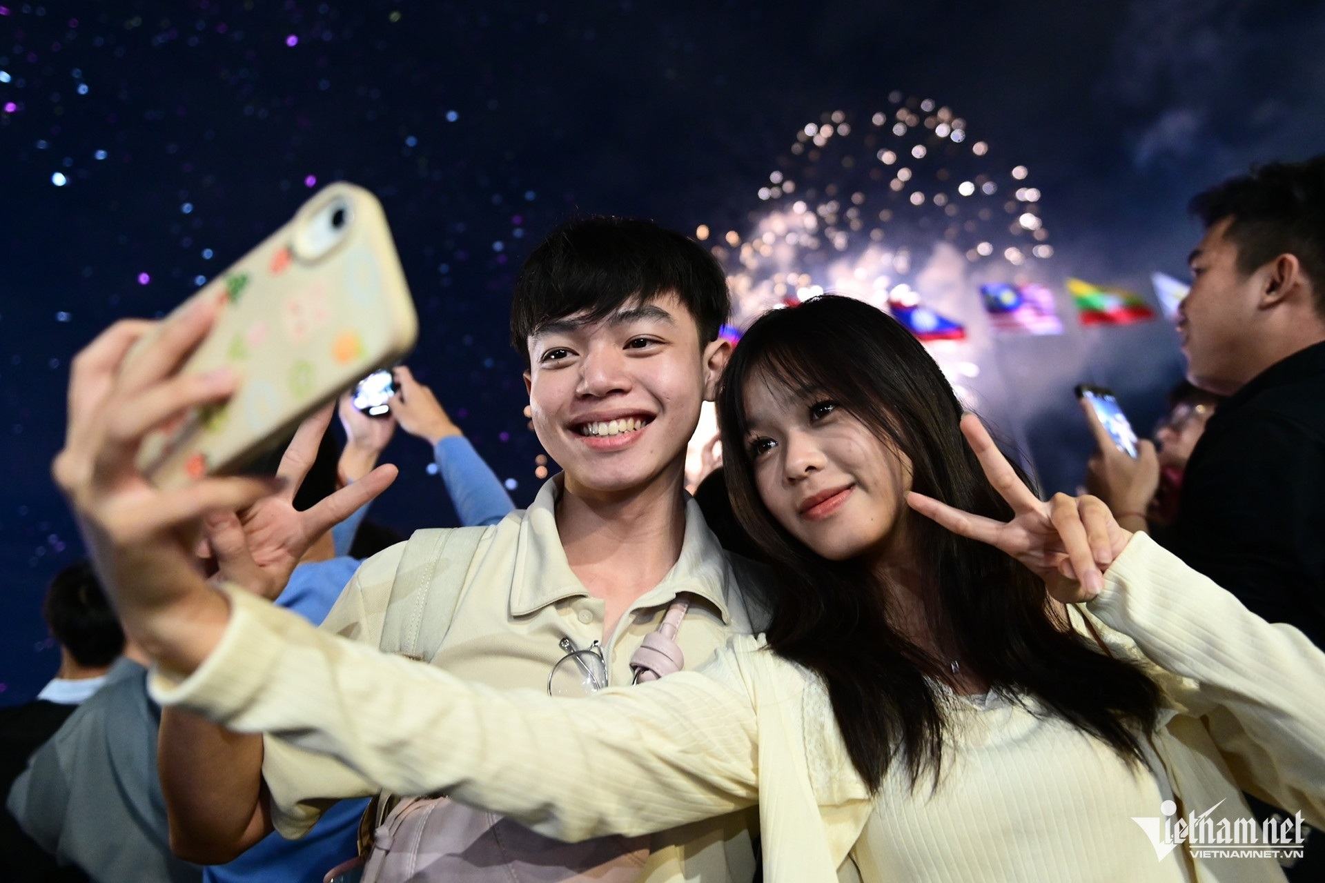 Thuỳ Vân (quê Lạng Sơn, hiện học tại Hà Nội) cho biết, vì Tết Dương lịch chỉ được nghỉ 1 ngày, cô quyết định ở lại thành phố mà không về nhà. “Tối nay em và bạn đi xem pháo hoa thấy rất hạnh phúc, cảm thấy mọi người đều vui mừng cùng nhau đón thời khắc sang năm mới", Vân nói.