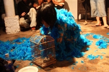 Trước đó, nữ họa sĩ – nghệ sĩ trình diễn đương đại Lại Thị Diệu Hà cũng đã từng rất nổi tiếng với tác phẩm trình diễn khỏa thân “Bay lên” gây chấn động dư luận trong năm 2010. Ở tác phẩm này, Lại Thị Diệu Hà đã cởi bỏ toàn bộ trang phục của mình rồi trát keo lên cơ thể và phủ lông lên toàn thân, biểu diễn động tác của một con chim chuẩn bị tung cánh. Sau đó chị mở lồng chim, nhét chú chim nhỏ vào miệng rồi thả ra ngay sau đó.