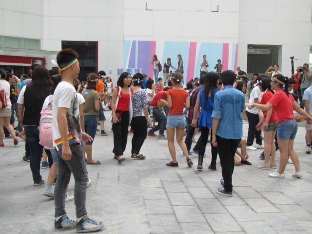 - Chiều 23/9 vừa qua, hàng ngàn bạn trẻ đã tham gia sự kiện nhảy flashmob đồng thời tại 3 địa điểm Hà Nội, Đà Nẵng, TP.HCM để ủng hộ cộng đồng LGBT (Les, Gay, Bi, Trans) với tên gọi "Yêu là yêu - LGBT Flash Mob 2012".