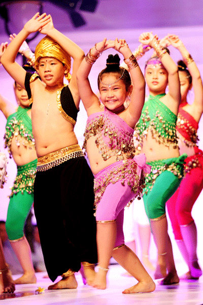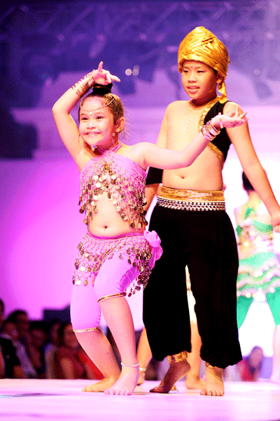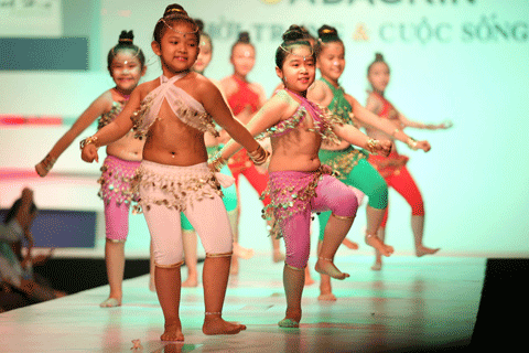 Dù chỉ là tiết mục góp vui cho một chương trình thời trang chủ đề mùa hè, nhưng màn múa bụng của các vũ công “nhí” tuổi từ 8 đến 10 thuộc vũ đoàn ABC-Kids đã mang lại phấn khích cao độ cho khán giả .