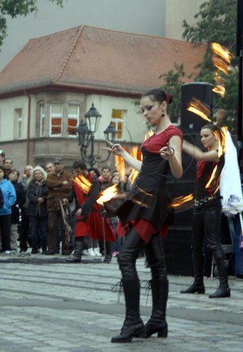 - Múa lửa là một màn trình diễn hầu như không thể thiếu trong các phiên chợ kiểu Trung Cổ ở các quốc gia châu Âu, đặc biệt là ở Đức.