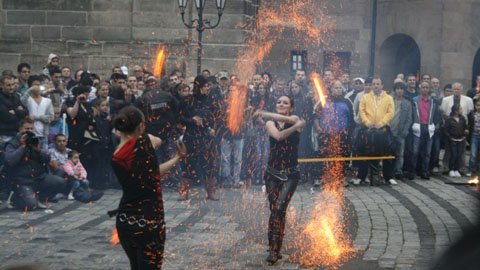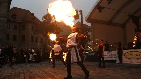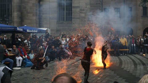 Tại thành phố miền nam nước Đức Nürnberg (Nuremberg), các nghệ sĩ trình diễn màn múa lửa điêu luyện và kịch tính.