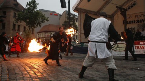 Múa lửa là một phần trong hoạt cảnh chiến đấu của các dũng sĩ thời Trung Cổ