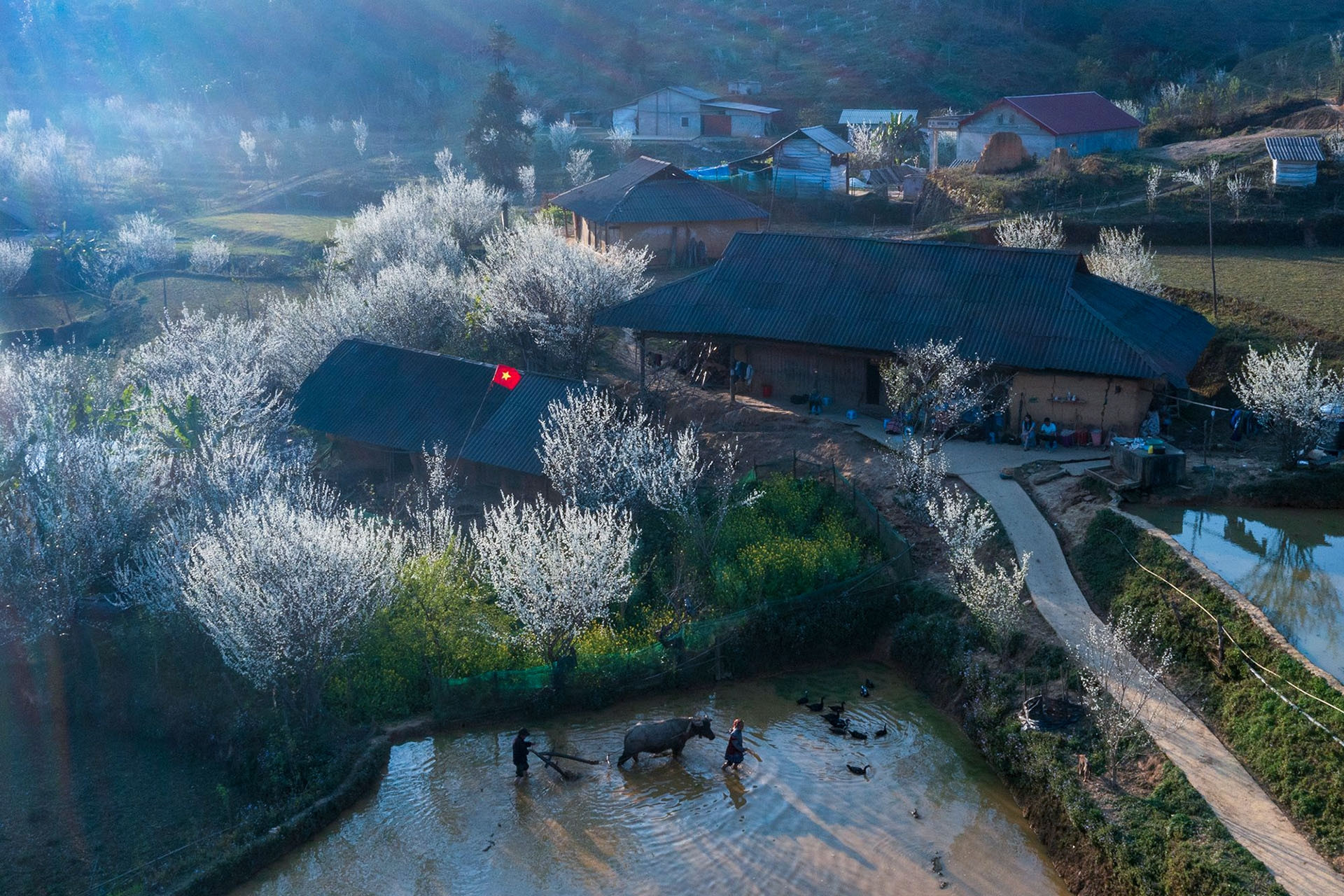 Từ 7h sáng 8/6, hàng nghìn người dân và du khách đã di chuyển đến khu vực sân vận động trung tâm huyện Bắc Hà để mua vé vào sân.