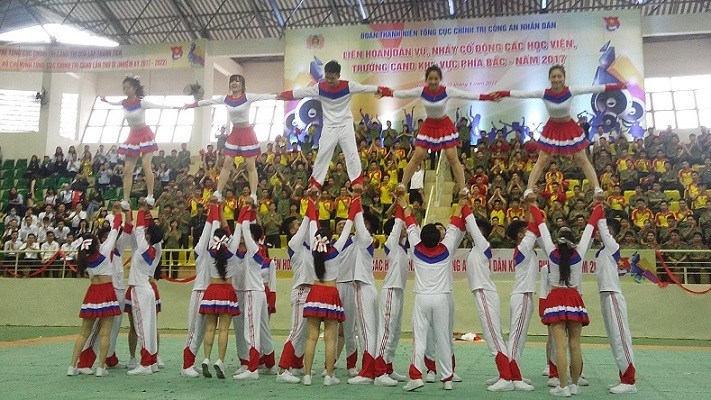 Năm nay, Liên hoan dân vũ, nhảy cổ động có sự góp mặt của gần 1.000 đoàn viên, sinh viên đến từ 10 học viện, trường công an nhân dân khu vực phía Bắc.