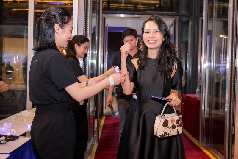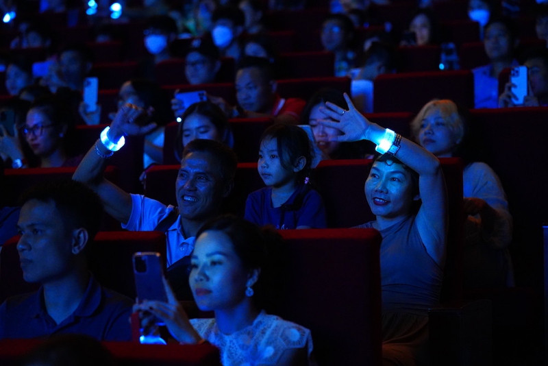 Phía dưới, các vòng tay phát sáng cũng tự động được bật lên, tạo nên khung cảnh lung linh hiếm thấy. Rất nhiều cánh tay đã đưa cùng nhịp, tạo nên những dòng sông ánh sáng trải dài. “Quá tuyệt vời. Không cần đao to búa lớn, VinFast dùng hoạt động cộng đồng để kéo người dùng lại gần nhau hơn”, anh Trần Đức Hải, một trong những vị khách có mặt tại sự kiện hào hứng nói.