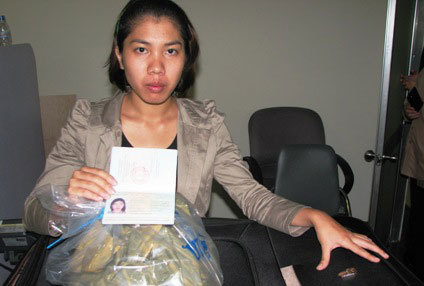 Trần Hạ Tiên cùng tang vật là 4,1 kg ma túy cất giấu tinh vi trong đáy va ly hành lý |