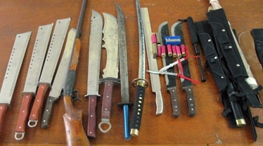 Kiểm tra xe taxi, cảnh sát phát hiện 1 súng bắn đạn hoa cải, 9 viên đạn súng hoa cải, 22 viên đạn súng thể thao, 8 đao, 2 kiếm, dao dao tông, 1 roi sắt.