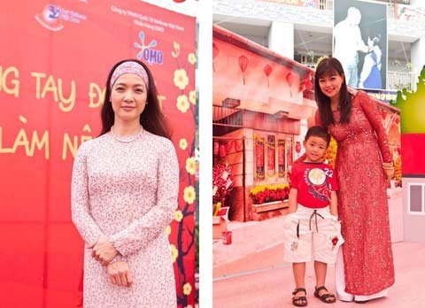 MC Quỳnh Giang: Con trẻ bây giờ có quần áo mới quanh năm, thích đồ ăn nhanh hơn, chẳng còn háo hức bánh chưng xanh, dưa hấu đỏ, không cùng cha mẹ nấu bánh tét hay trang hoàng nhà cửa ngày Tết… nên Giang nghĩ tình yêu Tết của trẻ không còn nhiều, hoặc vô tình không còn sâu sắc như thế hệ của mình ngày xưa. Ý thức điều đó nên với 4 bé nhà mình, Giang luôn hướng các bé về với truyền thống, dù chỉ là những điều rất nhỏ thôi. Giang dạy các bé biết khoanh tay chúc Tết ông bà, biết cảm ơn và chúc Tết lại khi nhận được lì xì, đưa các con đi chùa chiền, tham gia vào các chương trình gói bánh chưng cho trẻ em nghèo tại Nhà Văn hóa Thanh Niên, và đặc biệt Tết nào Giang cũng chuẩn bị áo dài, khăn đống cho con mặc, đứa nào cũng thích hết.