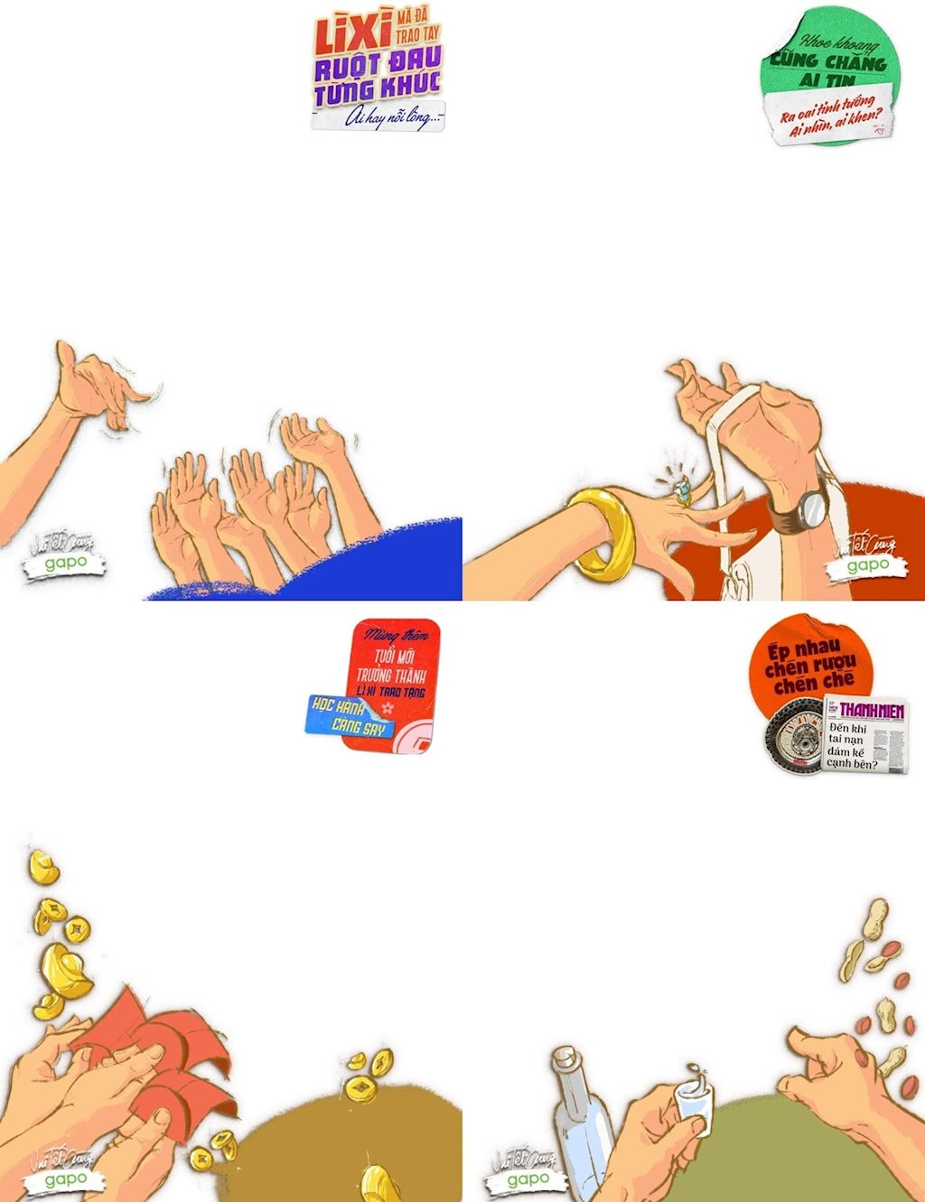 Tết Canh Tý 2020, Gapo cập nhật những xu hướng mới đem đến cho người dùng trải nghiệm mùa Tết thú vị. Một trong những cập nhật đó là bộ khung ảnh “Tết văn minh” được Gapo thiết kế độc quyền, kèm những câu kêu gọi “Tết văn minh” vừa hài hước cũng vừa thời thượng như: “Ép nhau chén rượu chén chè, đến khi tai nạn dám kề cạnh bên?”, “Bao giờ mới có người yêu? Có duyên phải tránh hỏi điều như trên”, “Mừng thêm tuổi mới trưởng thành, lì xì trao tặng học hành càng say”...