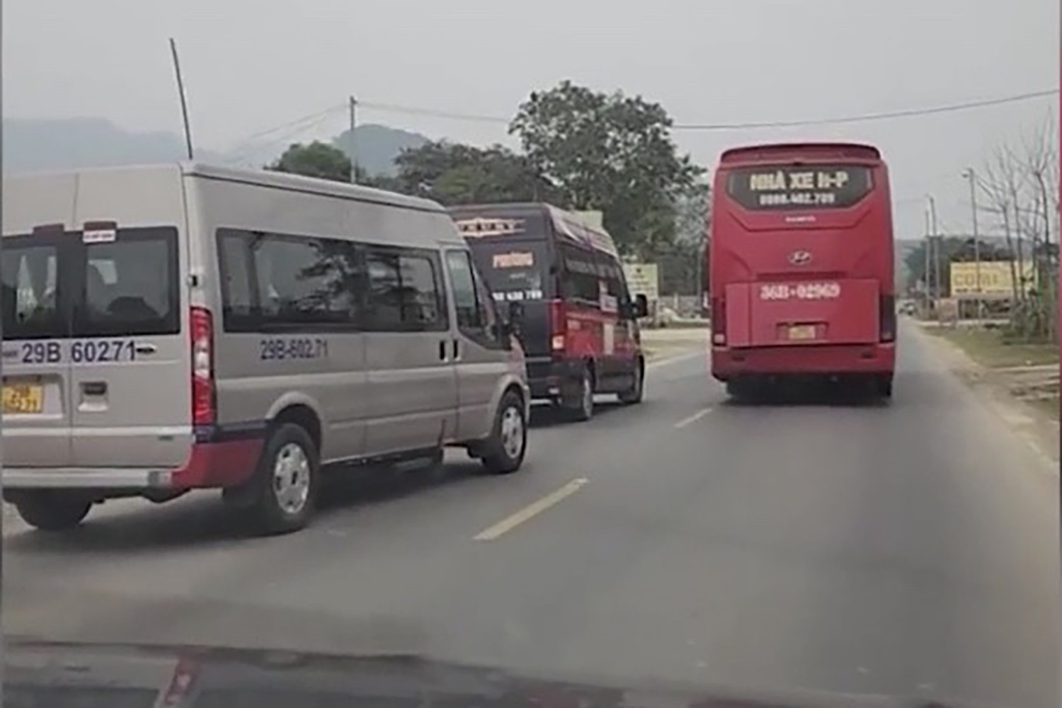 Nhận được điện thoại của Ba, Hiếu gọi điện cho Dũng đang điều khiển xe khách 16 chỗ BKS 36B-031.XX chạy phía sau. Đến Km510+80 trên đường Hồ Chí Minh, Hiếu và Dũng phát hiện phía sau có xe khách 16 chỗ nhãn hiệu Ford Transit BKS 29B-602.XX, do anh P.Q.T. điều khiển đang lưu thông cùng chiều, nên đã cho xe khách đi chậm lại.