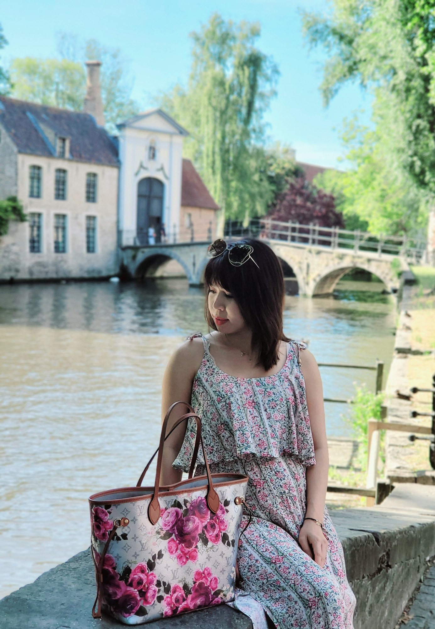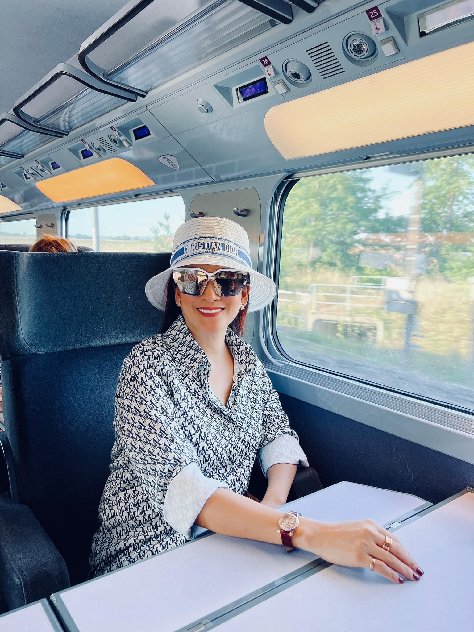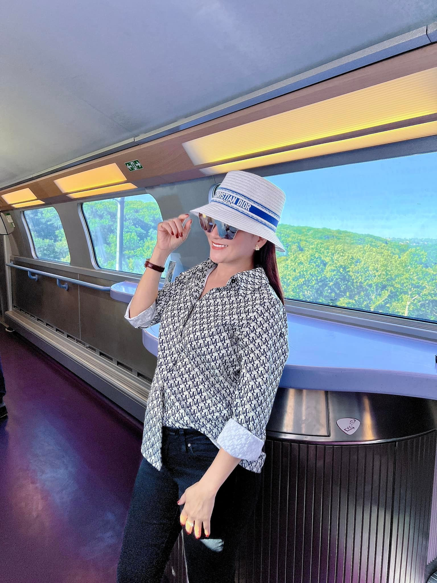 Cặp đôi di chuyển bằng tàu điện từ Pháp sang Thụy Sĩ. Bình Minh luôn chụp cho vợ những khoảnh khắc đẹp trong chuyến đi.