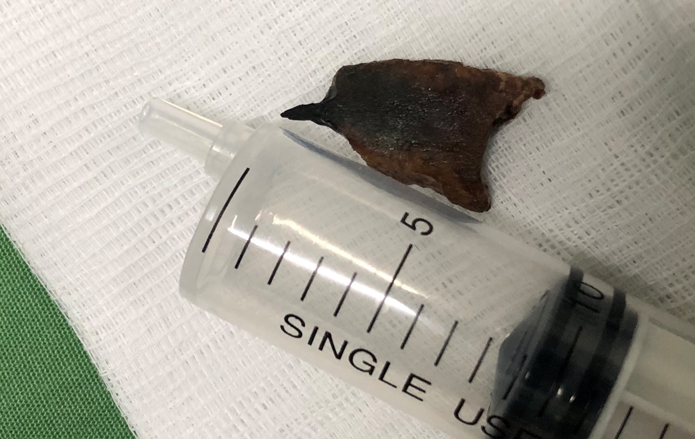“Điểm khó nhất là xương nằm trong phổi 20 năm nên mọc rất nhiều mô hạt, mảnh sắc nhọn cắm sâu vào thành phế quản, kích thuốc dị vật 5x7cm”, bác sĩ Vân Thanh nói. Đây cũng là ca dị vật bị bỏ quên lâu năm nhất được ghi nhận tại Bệnh viện Chợ Rẫy.