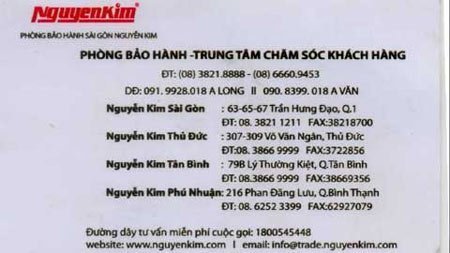 | Danh thiếp giả mạo nhân viên Trung tâm bảo hành Nguyễn Kim |