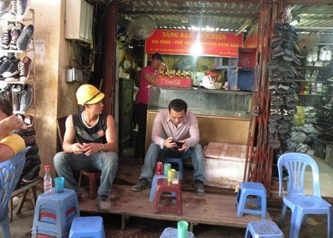Tương tự, chủ một tiệm vàng ở cổng chợ Dịch Vọng (Cầu Giấy, HN) cũng đang áp dụng hình thức "thuê chung, gối vụ" này với một chủ quán nước.