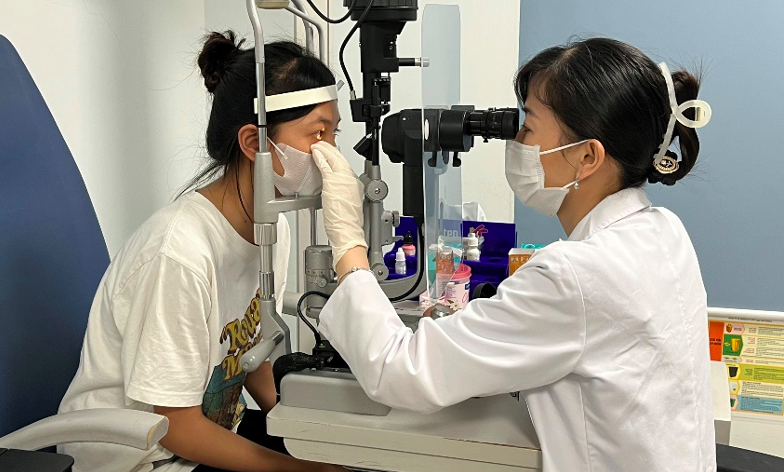 Thạc sĩ, bác sĩ Hoàng Thanh Nga, Bệnh viện Mắt Hà Nội 2, ngày 1/8 cho biết nguyên nhân của tình trạng khô mắt này do bệnh nhân sử dụng kính áp tròng (lens) trong thời gian dài.