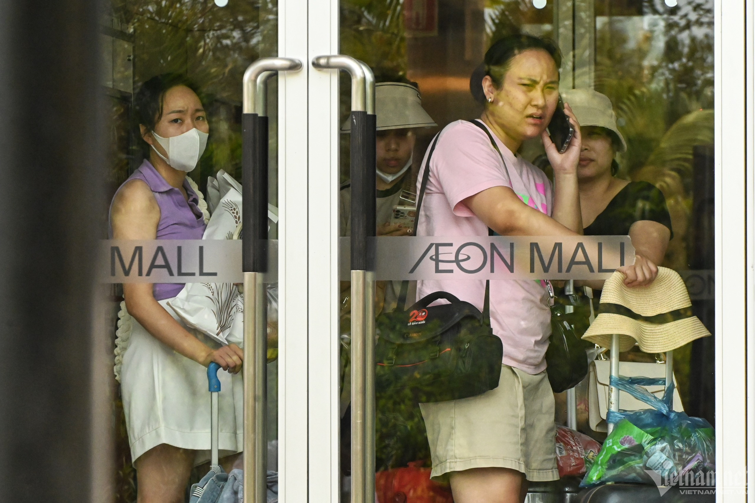 Chị Nguyễn Thị Thảo (trái) cùng gia đình đi du lịch từ xa về. Khi xuống xe, cả nhà kéo nhau vào TTTM ăn trưa và nghỉ ngơi rồi chờ đến khi mát mẻ mới di chuyển về nhà.