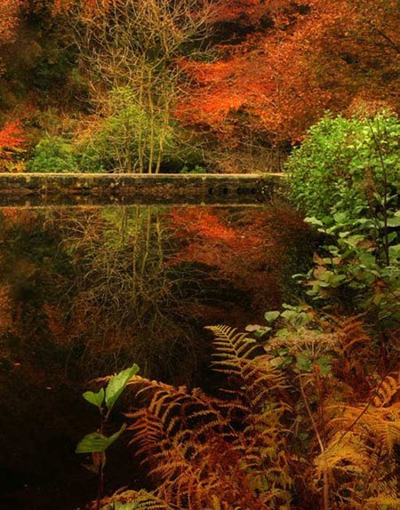 Sắc thu phản chiếu trên mặt hồ ở Hardcastle Crags.