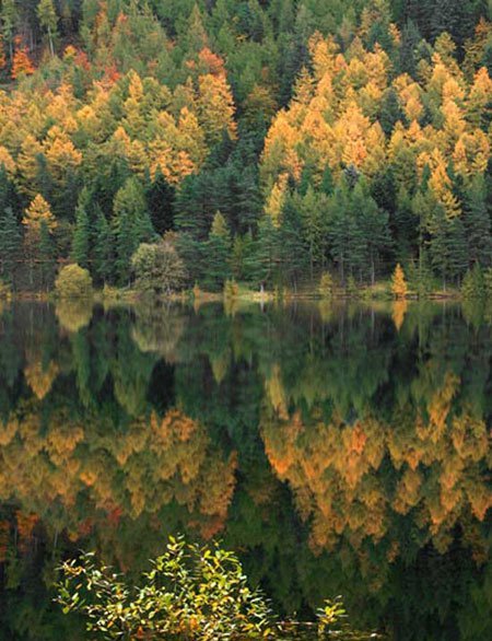 Lá vàng in trên mặt nước ở Perthshire, Scotland.