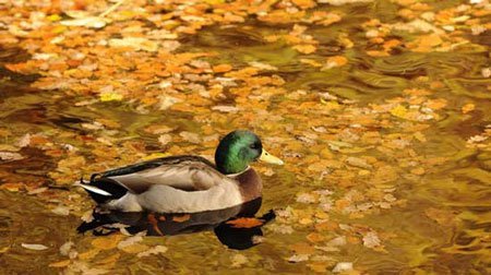 Con vịt in bóng mình dưới nước ở Perthshire, Scotland.
