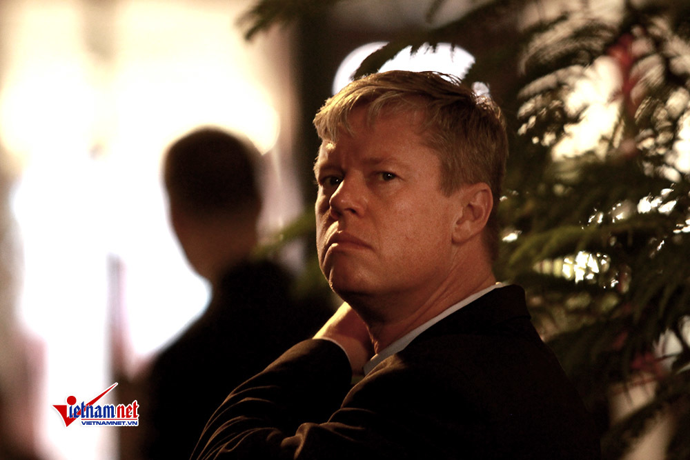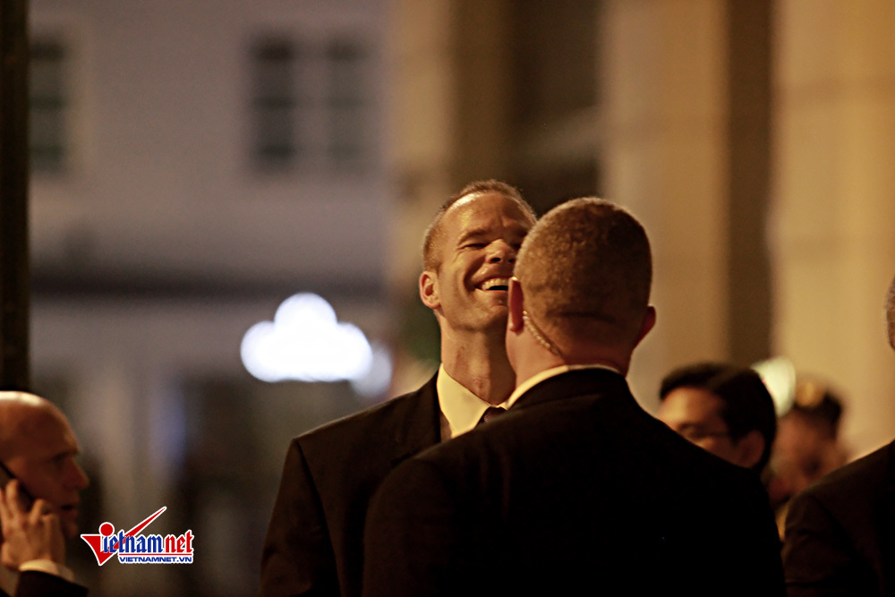 Hai mật vụ đang trao đổi ở khu vực phía ngoài khách sạn