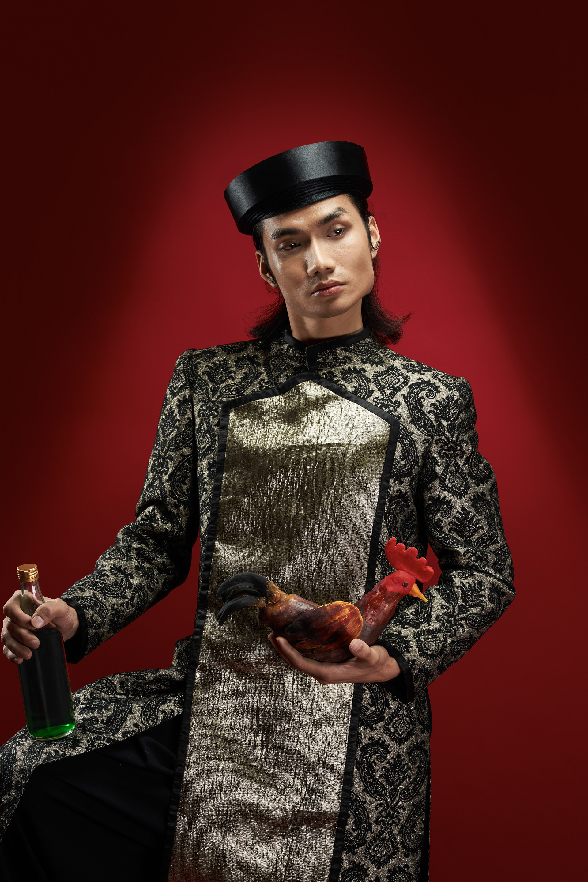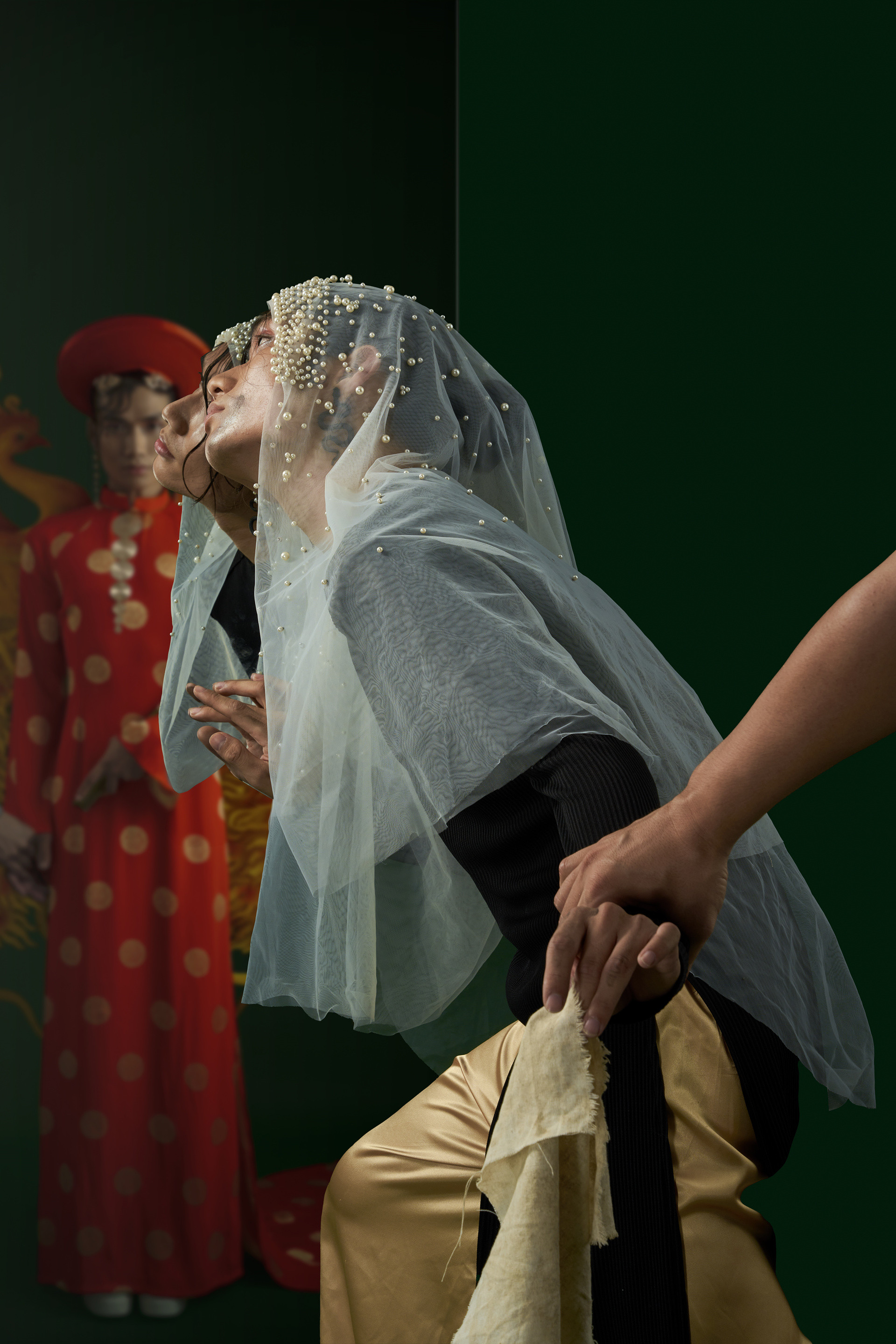 Bộ ảnh thời trang “Mâm trên mâm dưới” do người mẫu Harry Nista đảm nhận 2 vai cô dâu và chú rể. Lấy ý tưởng đám cưới truyền thống, gen Z thực hiện bộ ảnh theo hướng hài hước nhằm châm biếm sự bất bình đẳng nam nữ.