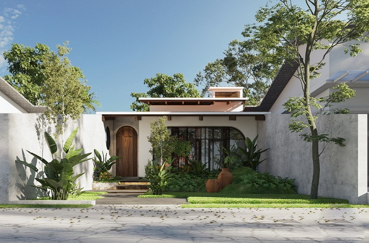 Một mẫu nhà ống 1 tầng có thiết kế độc đáo với phần sân vườn mở.